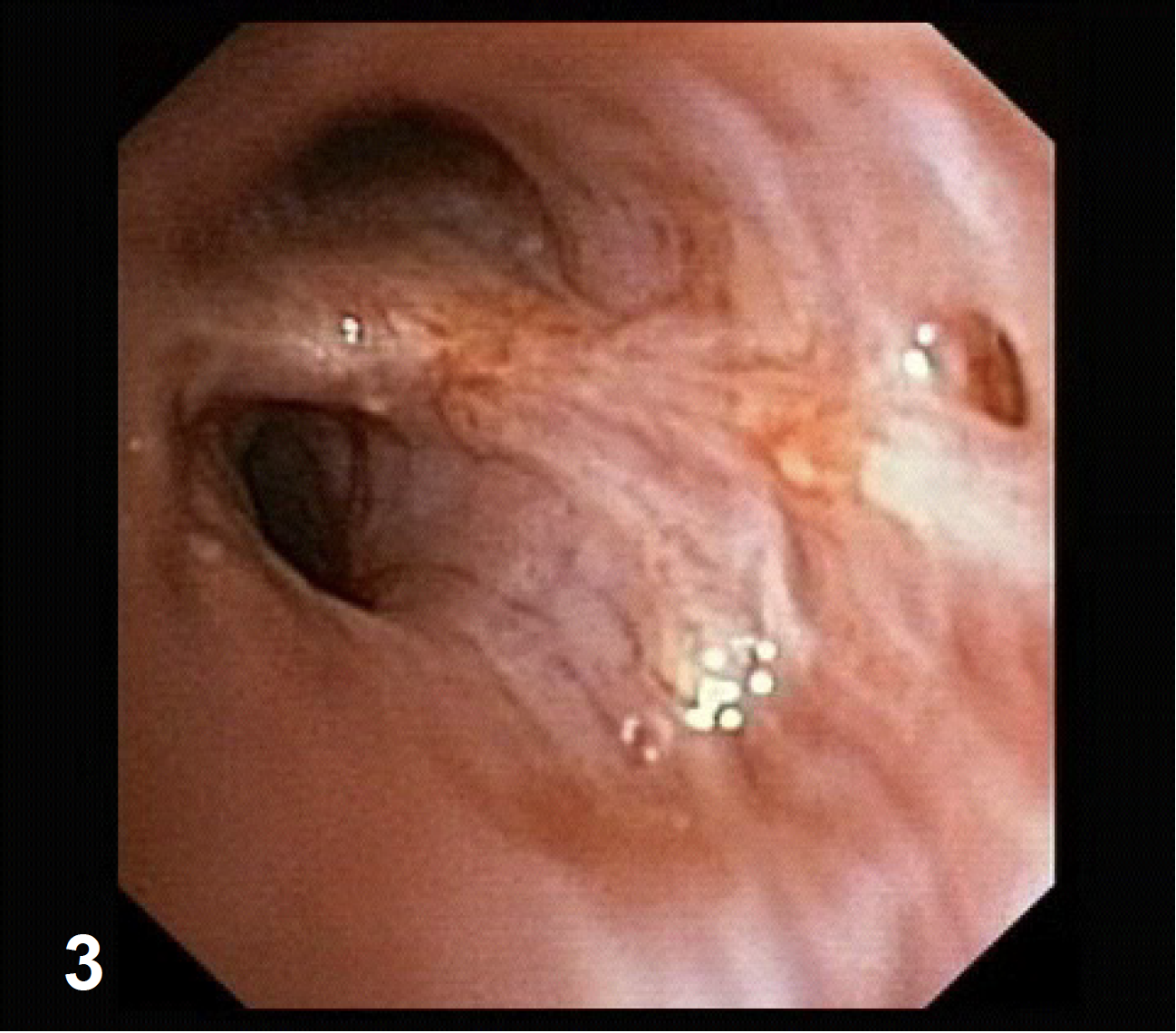 La videobroncoscopia consecutiva en el centro pulmonar mostró estructuras sospechosas de la mucosa.