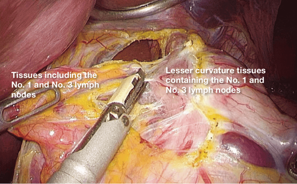 4.Dissection of No. 1 and No. 3 lymph nodes (anteriorsurface of the stomach)