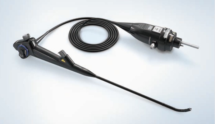 局所麻酔下では肺の容積のコントロールができず観察範囲が制限されるので、硬性鏡より先端のフレキシブルな硬性胸腔鏡が使いやすい(写真2)。ビデオ胸腔鏡が視野も明るく観察しやすい。