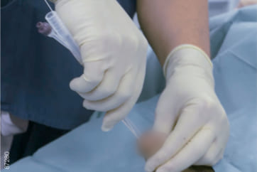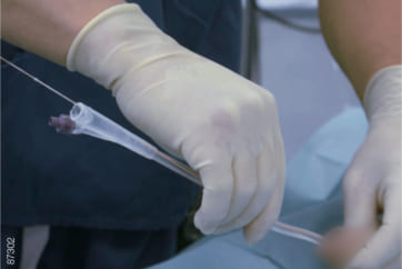 · Lubricate both tips of the silicone catheter and the meatus with anesthetic gel.